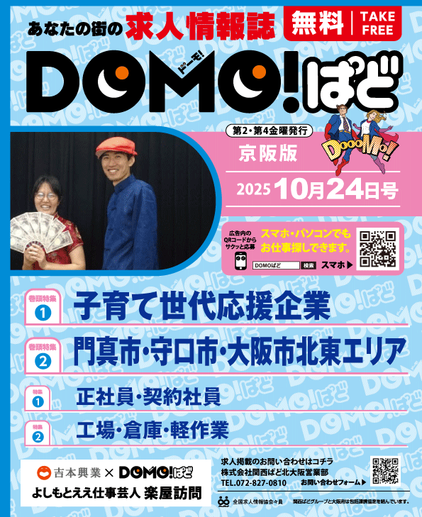 NEWSお知らせ EVENT2025年10月24日 10月24日(金)発行!無料求人情報誌「DOMOぱど」各誌面内容はコチラ! 簡単!便利!すぐに求人情報がつかめて即応募! 関西エリア発行の各誌掲載内容は下記URLから要チェック‼ 京阪版 https://domo.meclib.jp/domop_kh_251024/book/index.html 大阪東部版 https://domo.meclib.jp/domop_ot_21024/book/index.html 南大阪版 https://domo.meclib.jp/domop_mo_251024/book/index.html 泉州版 https://domo.meclib.jp/domop_sh_251024/book/index.html 和歌山版 https://domo.meclib.jp/domop_wk_251024/book/index.html 「DOMO!ぱどNET関西」でも最新求人情報をチェック! ↓↓↓↓↓ https://domonet.jp/pado 前へ トップページへ 次へ