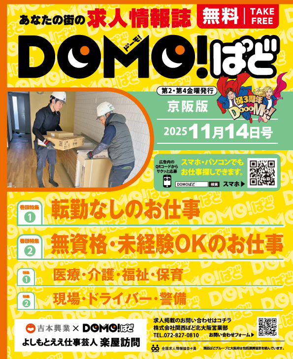 NEWSお知らせ EVENT2025年11月14日 11月14日(金)発行!無料求人情報誌「DOMOぱど」各誌面内容はコチラ! 簡単!便利!すぐに求人情報がつかめて即応募! 関西エリア発行の各誌掲載内容は下記URLから要チェック‼ 京阪版 https://domo.meclib.jp/domop_kh_251114/book/index.html 大阪東部版 https://domo.meclib.jp/domop_ot_25114/book/index.html 南大阪版 https://domo.meclib.jp/domop_mo_251114/book/index.html 泉州版 https://domo.meclib.jp/domop_sh_251114/book/index.html 和歌山版 https://domo.meclib.jp/domop_wk_251114/book/index.html 「DOMO!ぱどNET関西」でも最新求人情報をチェック! ↓↓↓↓↓ https://domonet.jp/pado 前へ トップページへ 次へ