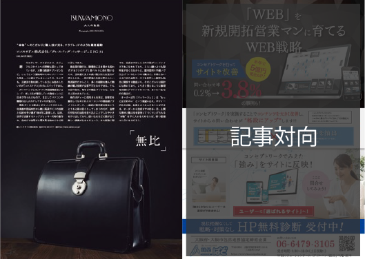 上記のような誌面フォーマットにて、目的や商材に合わせて掲載可能です。1ページ、1/2ページ、編集タイアップなど形式は自由。画像・ロゴのみでの掲載も可能。制作代行も対応