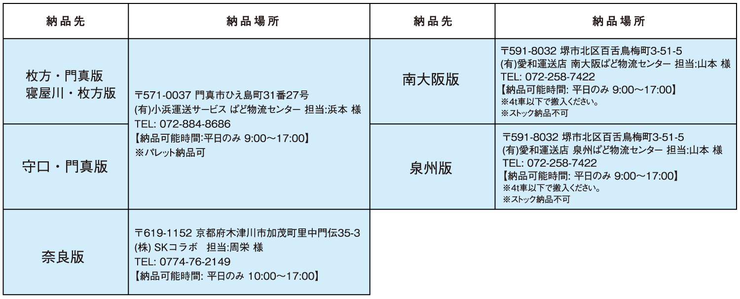 - 配布前週の木曜日17:00 [ 各版指定場所 ]